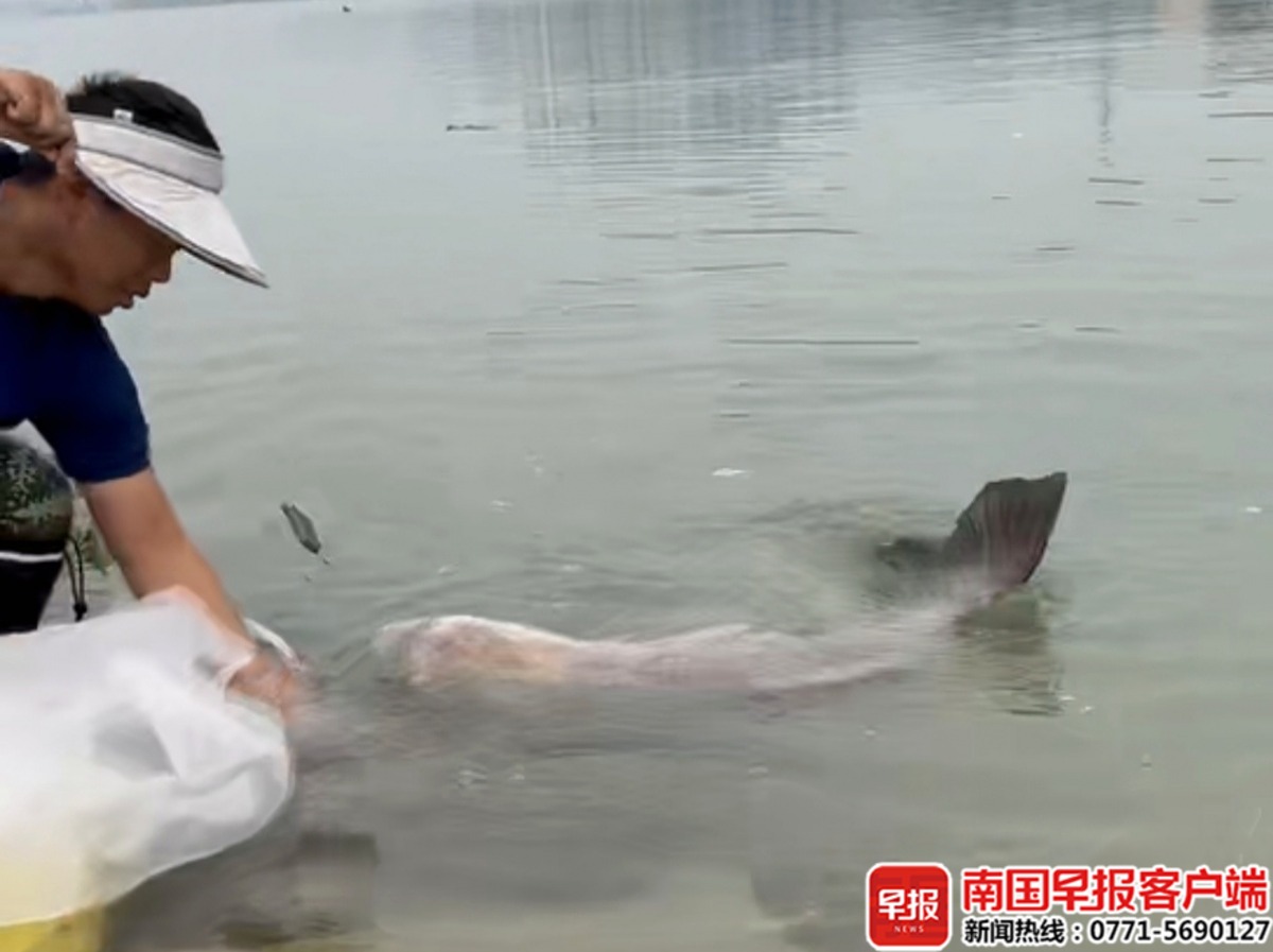潘先生说,他本年50多岁,从小就在江边日子,一向爱垂钓,简直有空就去邕江、红水河或海滨垂钓。上一年,他曾经在邕江钓起多条超越15公斤重的大鱼,其间一条大头鱼有23.5公斤重,“差不多有一个六七岁的小孩高”。其时,他把鱼绑在电瓶车后座,骑车夸耀了一番。