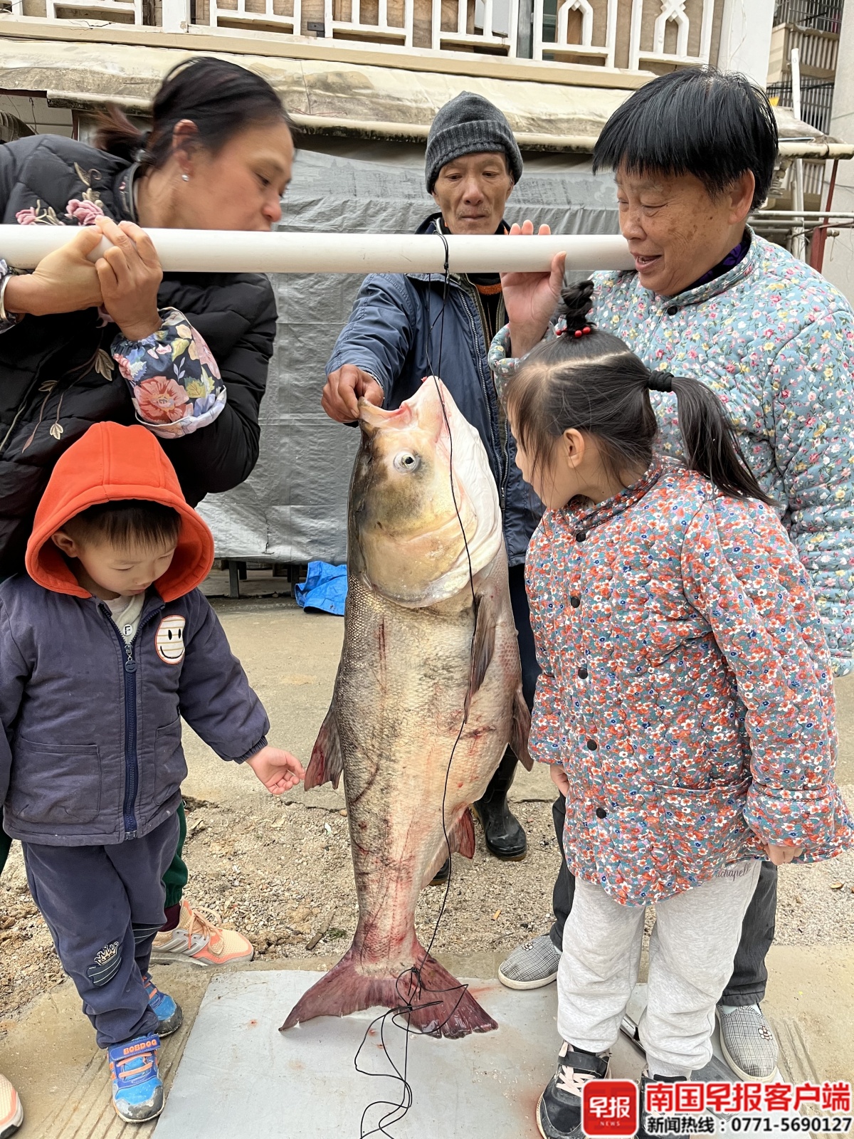 12月10日,在南宁永和大桥上游的邕江河段,南宁市民潘先生钓起一条重达27.5公斤的青鱼,刚上岸就被买家收走,卖了2000多元。